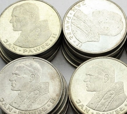 Monety 1000 zł 1982 Jan Paweł II przez wielu Klientów traktowane są jako srebro inwestycyjne. Zdjęcie przykładowe.