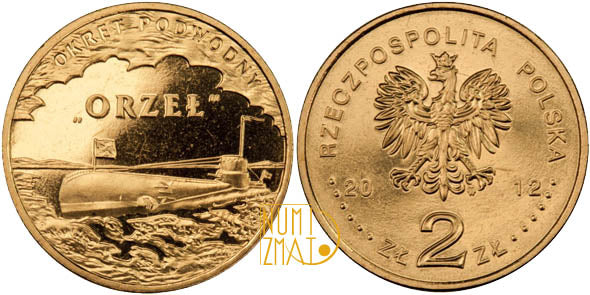 2 zł 2012 r. - Okręt podwodny Orzeł - Polskie okręty, dwa złote NG