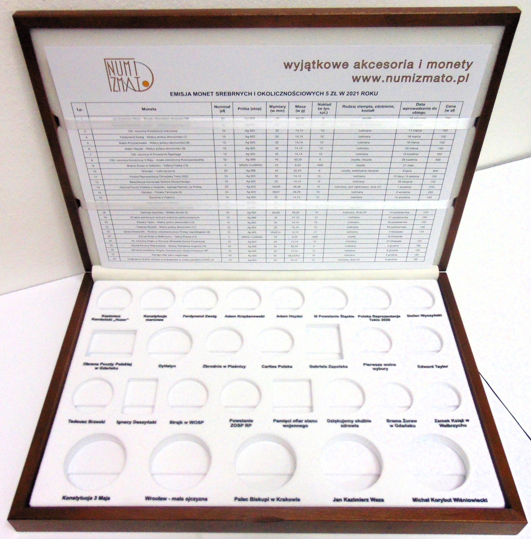 KASETA DE LUXE NA MONETY SREBRNE I 5 ZŁ EMITOWANE PRZEZ NBP W 2021 r.